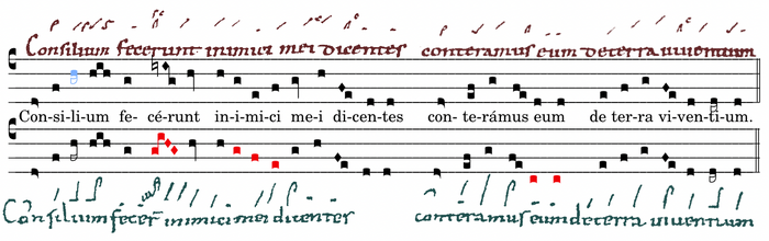 „fe-ce-runt“ Interessant das Wechselspiel „sa“ - „si“ in H. Sollten beide Gipfeltöne „sa“ sein, wurde das 'sursum' bereits beim Trc „consili-um“ stehen. In MR sind beide Gipfeltöne „sa“.
