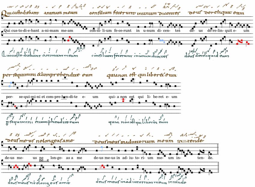 „deus meus in“ Währens MR bieder „deus mé-us“ betont, versteht H das als Aufschrei „dé-us meus“.