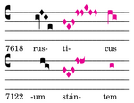 accentus incipiens et finalis. „stantem“ Die Liqueszenz verkürzt die CAD-Formel um vier Töne, die Melodie bleibt auf dem „do“ stehen, die Bewegung zum „re“ entfällt, textausdeutend zu verstehen.