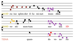 „Domine → quando veneris“ RP4 D, das schwächste mögliche Periodenende, als Ende des größeren Cento A, A aus E + D gebaut). Es folgt Cento B im eigentlichen 8.Modus in der schwächsten Form: CAD minima.